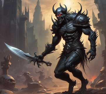 Black humanoid with muscular, skeletal armour as flesh. Morsefus (mor-seh-fUs) are created as 1st generation demons from mortal or quasi-immortal warriors by powerful necromantic spells which destroy the warrior and remake them into these demons. The only way to undo this recreation is to kill the Morbid Knight and resurrect the warrior with purification powers to restore the warrior as he or she was before being inflicted. Morsefus ascend into Morgrue of same generation if they exceed level 15.