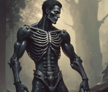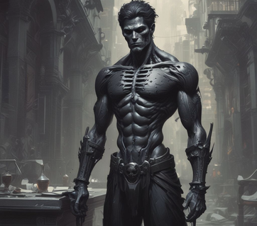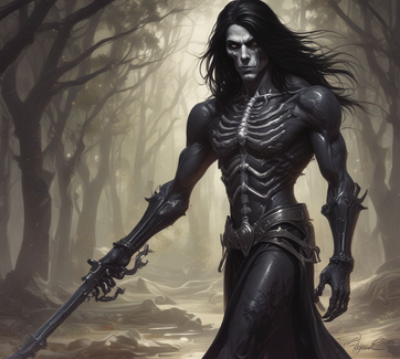 6'5, Black Skeletal form of hard muscle that acts as armour with command "Flesh to Magic Armour", at what time flesh deflects magic, and energy attacks back at attacker. Command can be silent or spoken aloud. A striking figure, these black as deep space Knights can be fantastically handsome, despite their unusual physical traits. Morgrue have inborn silent commands over their powers. When Morgrue reach level 30, they may undergo a transformation and become a Morgrue Lich.
